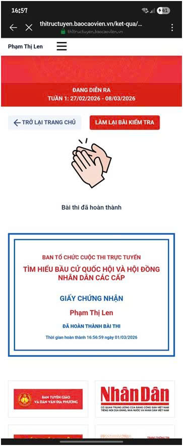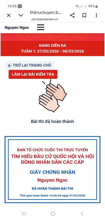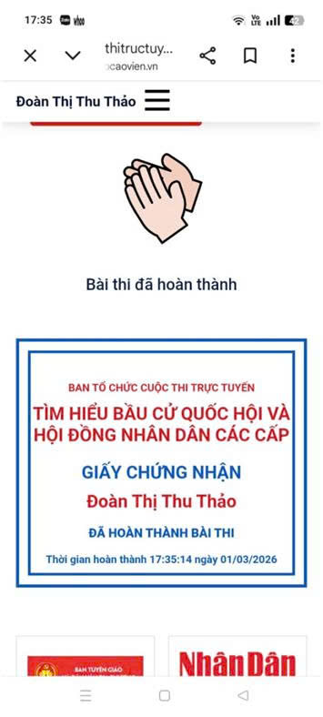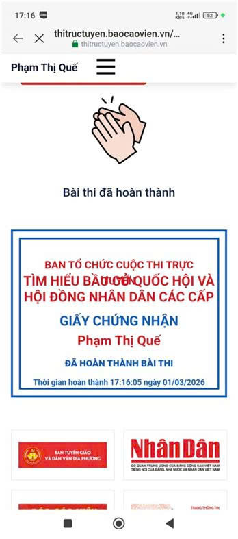Hưởng ứng Cuộc thi trực tuyến tìm hiểu về bầu cử đại biểu Quốc hội khóa XVI và đại biểu Hội đồng nhân dân các cấp nhiệm kỳ 2026–2031, Trường Tiểu học Hoành Sơn đã tích cực phát động toàn thể cán bộ, đảng viên, giáo viên và nhân viên nhà trường tham gia hưởng ứng.