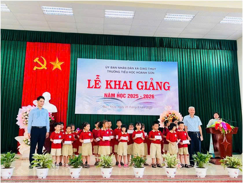 Nhân dịp khai giảng năm học mới 2025-2026, Ngân hàng Hợp tác xã Chi nhánh Nam Định, Phòng Tín dụng thành viên cùng Quỹ tín dụng nhân dân Hoành Sơn đã trao tặng 40 suất quà khuyến học cho các em học sinh có hoàn cảnh khó khăn của Trường Tiểu học Hoành Sơn.